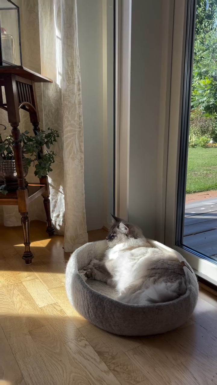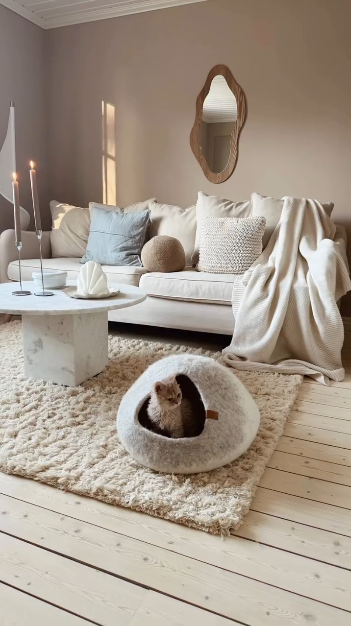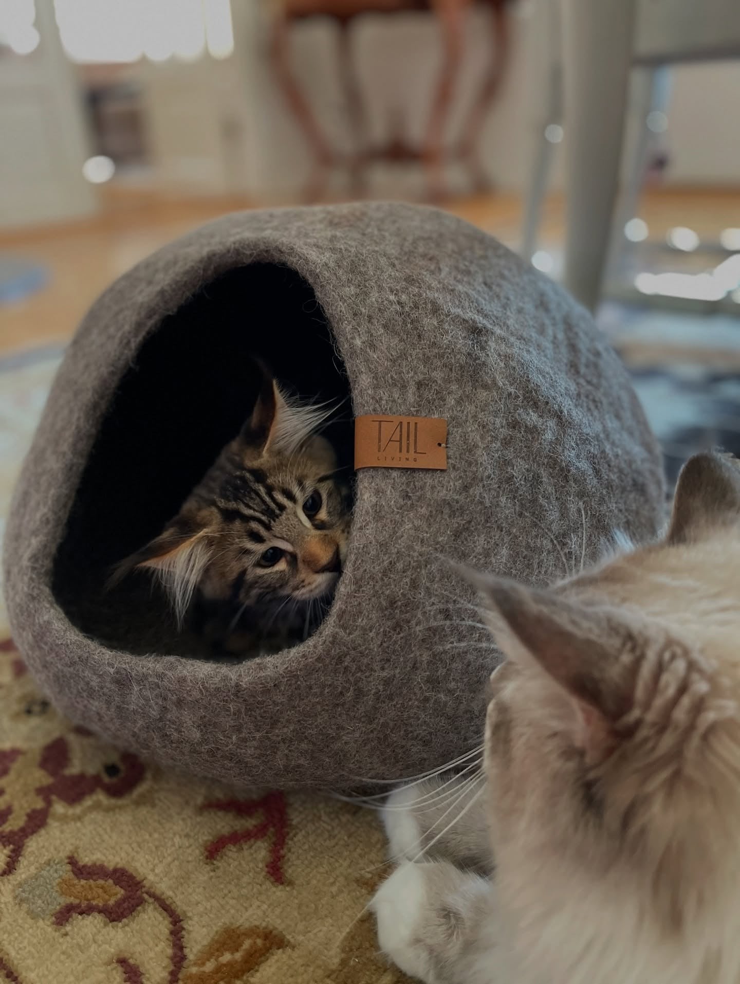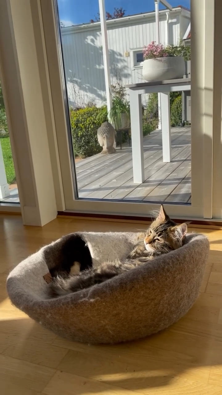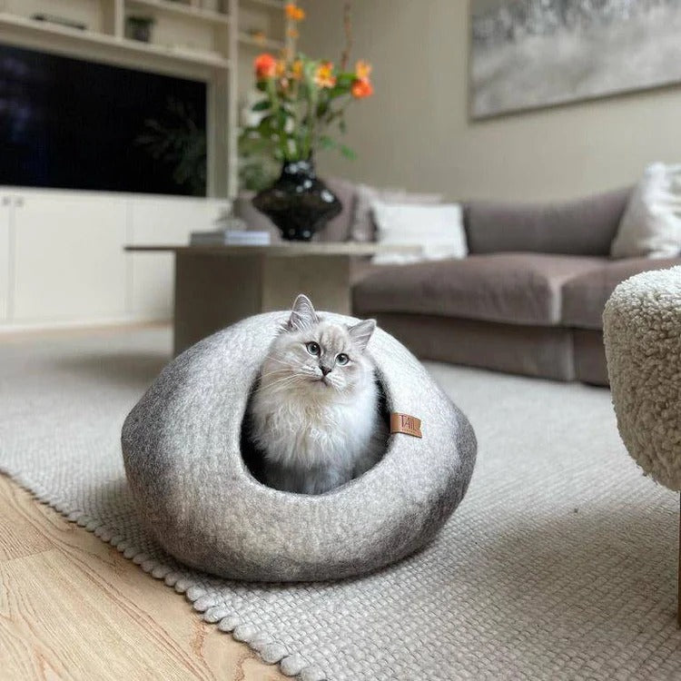 Synthetische Betten können Wärme und Feuchtigkeit speichern, was dazu führen kann, dass Katzen unruhig werden oder das Bett ganz meiden. Natürliche Materialien wie Wolle hingegen sind atmungsaktiv und leiten Feuchtigkeit auf natürliche Weise ab, während sie vertraute, beruhigende Gerüche bewahren – und so einen gemütlichen, sicheren und einladenden Platz für Ihre Katze schaffen.